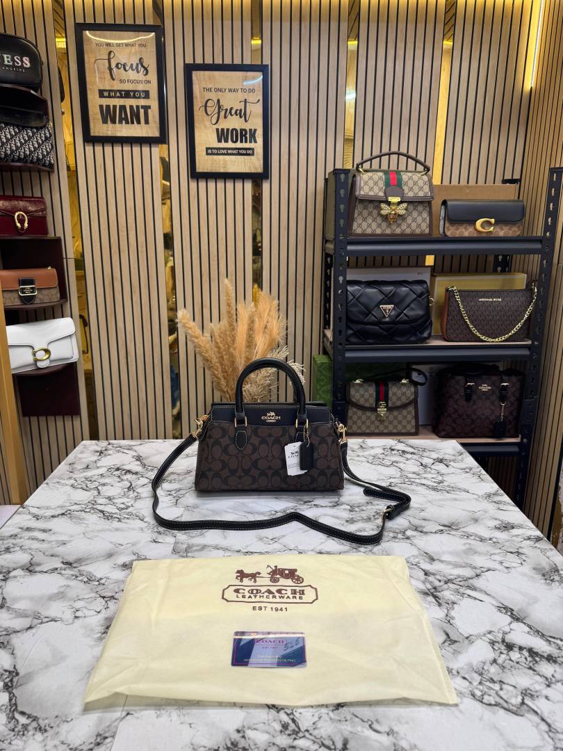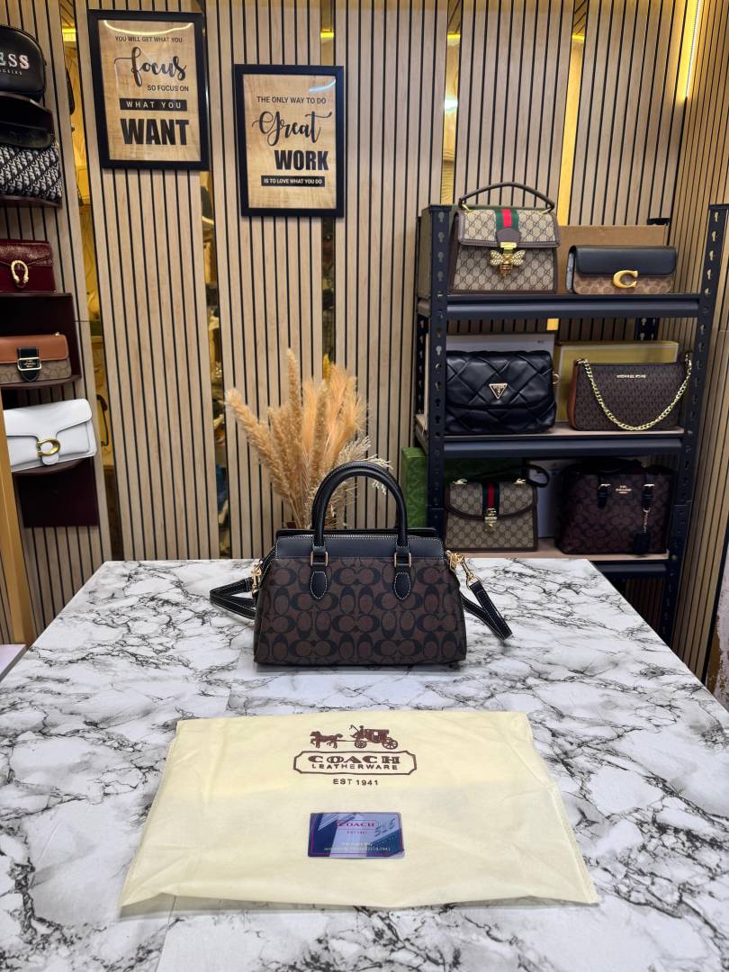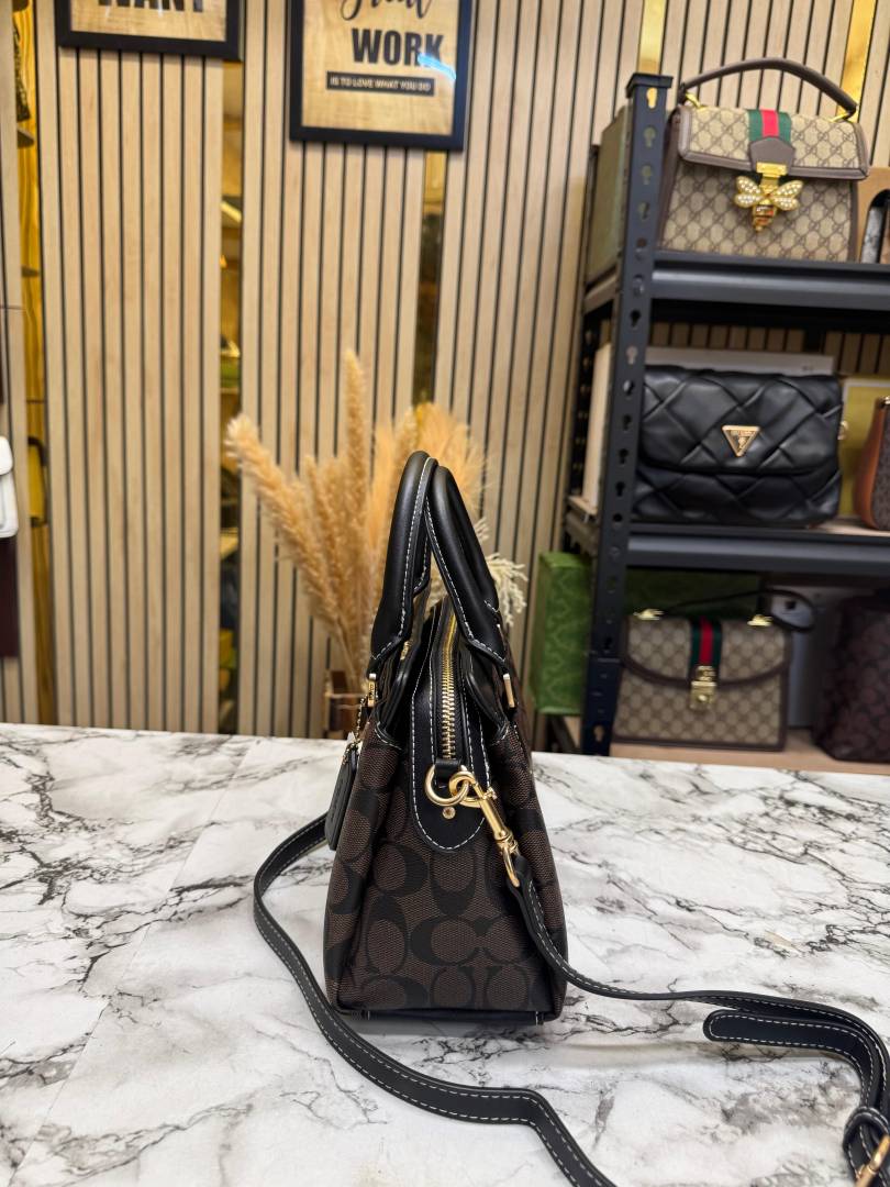 • Coac_h Rowan Satchel Hand Bag Classic C Canvas With Dust Bag Including Card (Coffee)