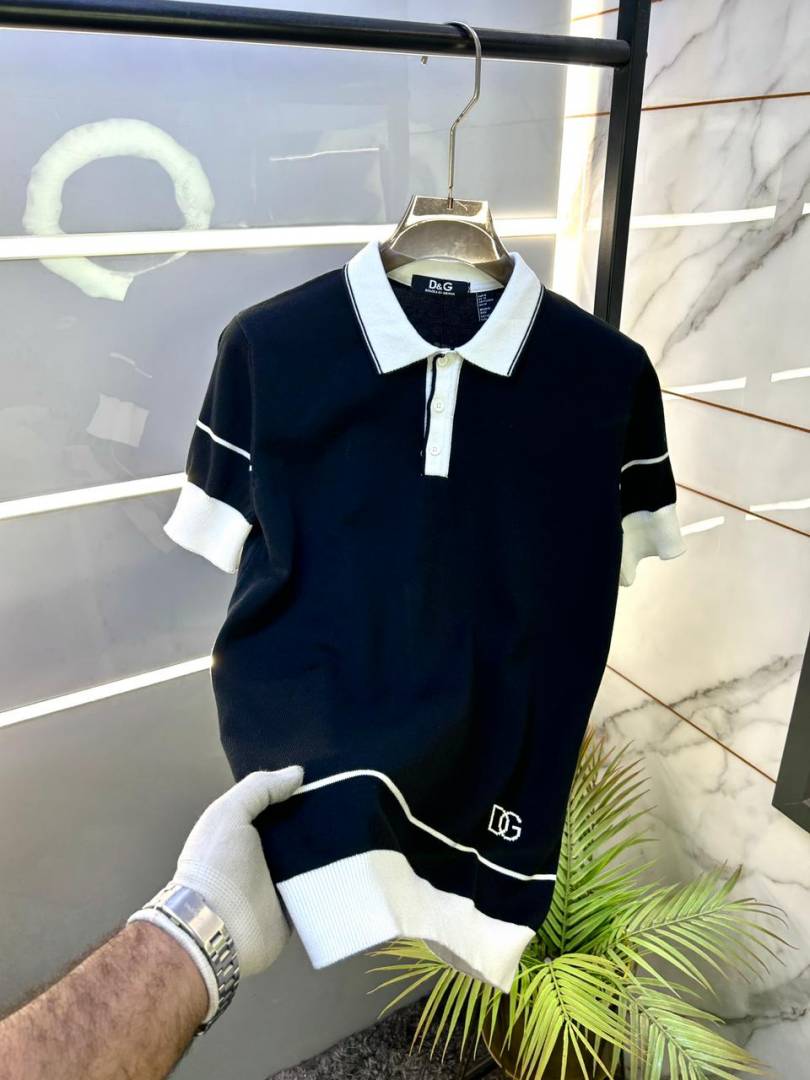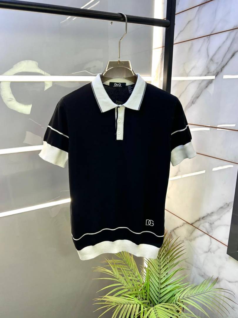 Dolc e & Gabban a Imported knitted Super Premium Black Collar Neck Polo T-shirt F3468-BL
