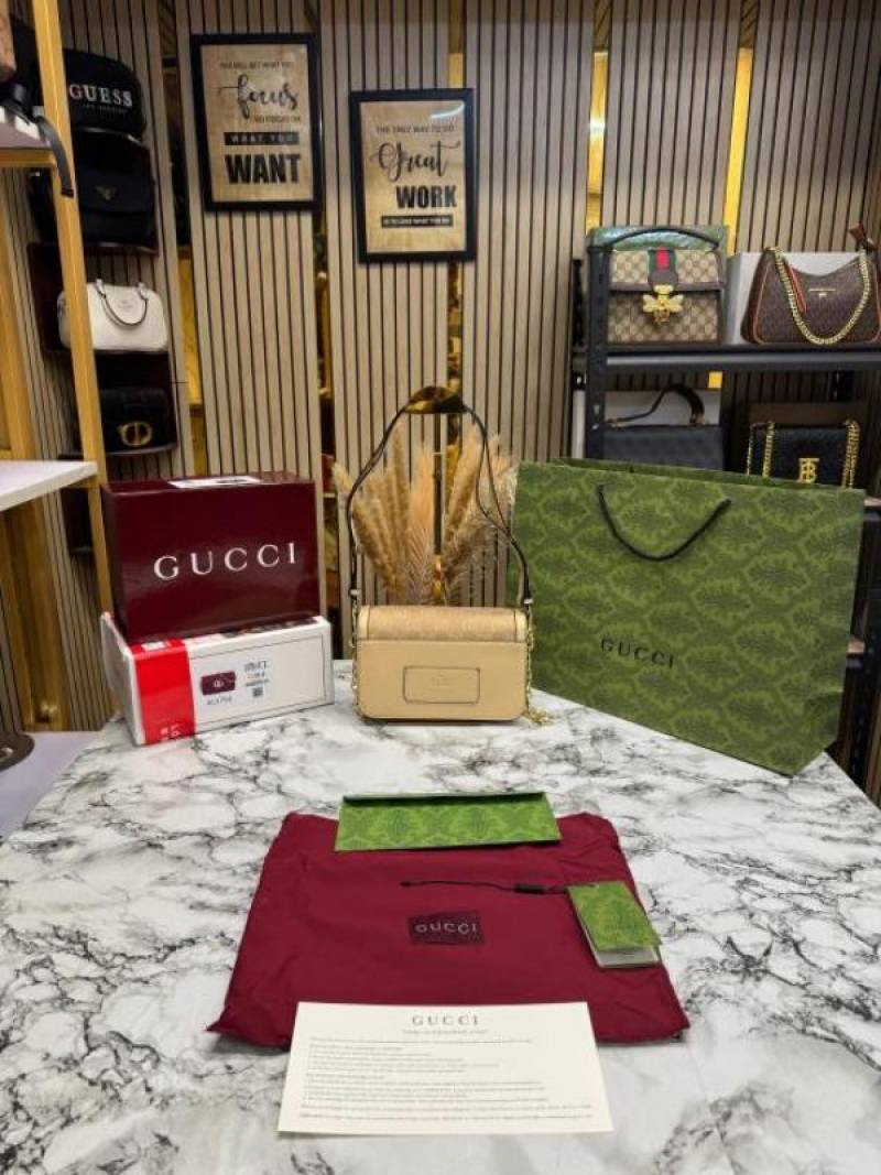 • GUCC_I GG CANVAS JACQUARD SHOULDER BAG WITH DOUBLE OG BOX AND DUST BAG INCLUDES CARRY BAG (46377-BEIGE)