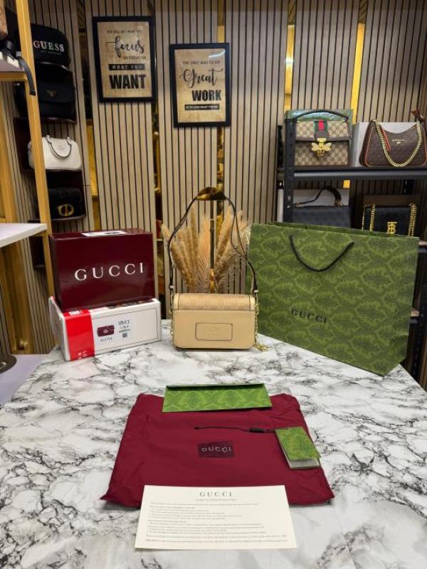 GUCC_I GG CANVAS JACQUARD SHOULDER BAG WITH DOUBLE OG BOX AND DUST BAG INCLUDES CARRY BAG (46377-BEIGE)