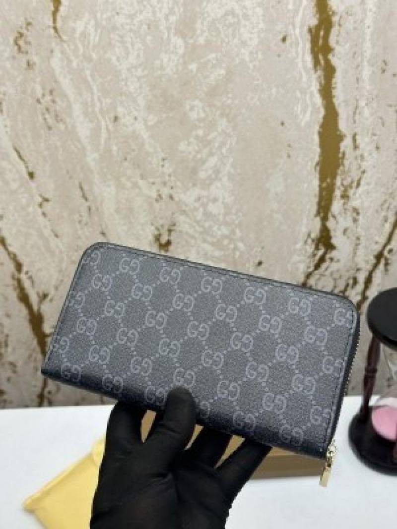 • Gucc_i GG Embossed Premium Quality Zip Around Wallet (Black)