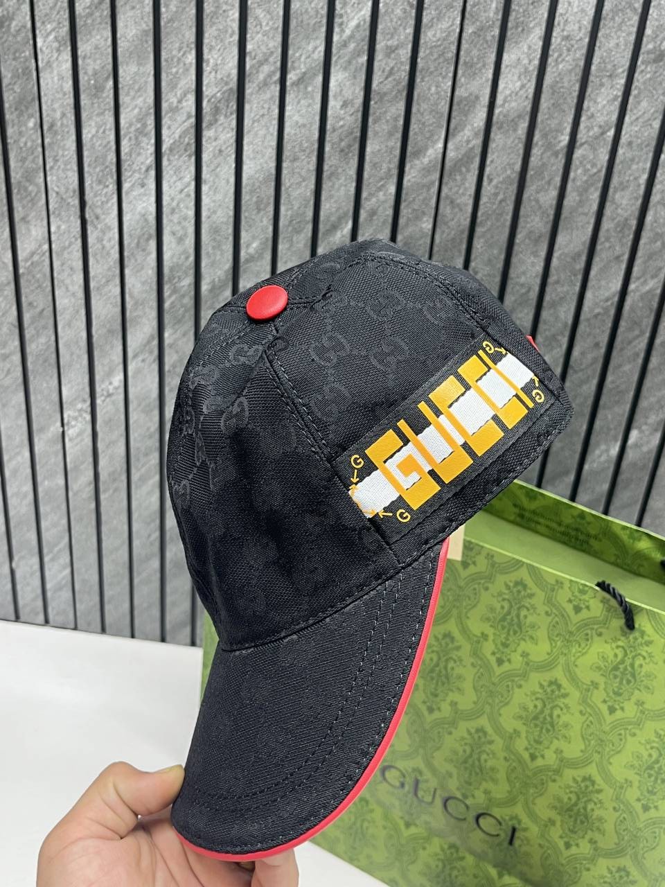 • Gucci_GG_Big_Side_Logo_Monogram_Black_Premium_Unisex_Cap_With_Brand_Polly_And_Carry_Bag