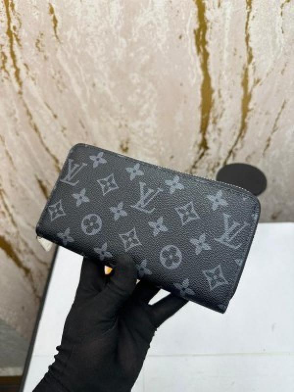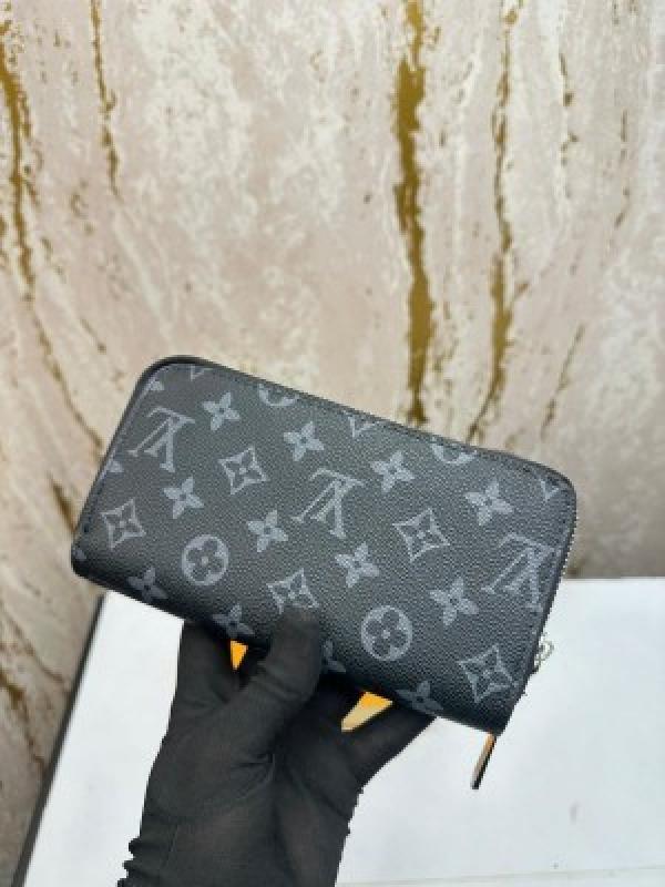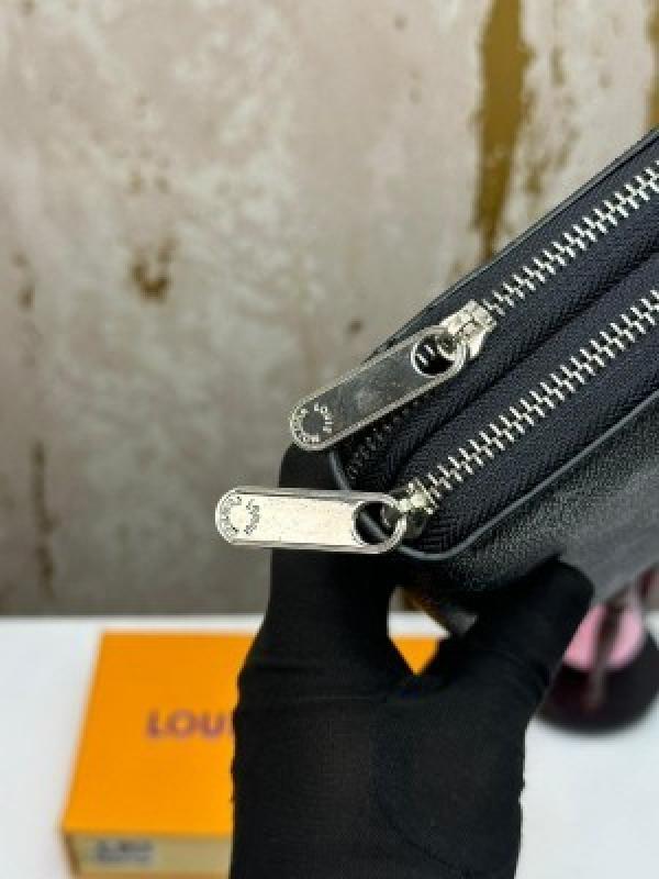 • LOUI_S VUITTON DOUBLE ZIPPER PREMIUM WALLET WITH BOX 078- (BLACK SQUARE)