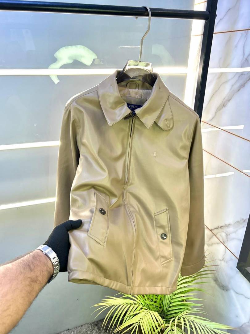 Ralph_Lauren Imported Super Premium Beige Leather Zipper Jacket F3227-BE