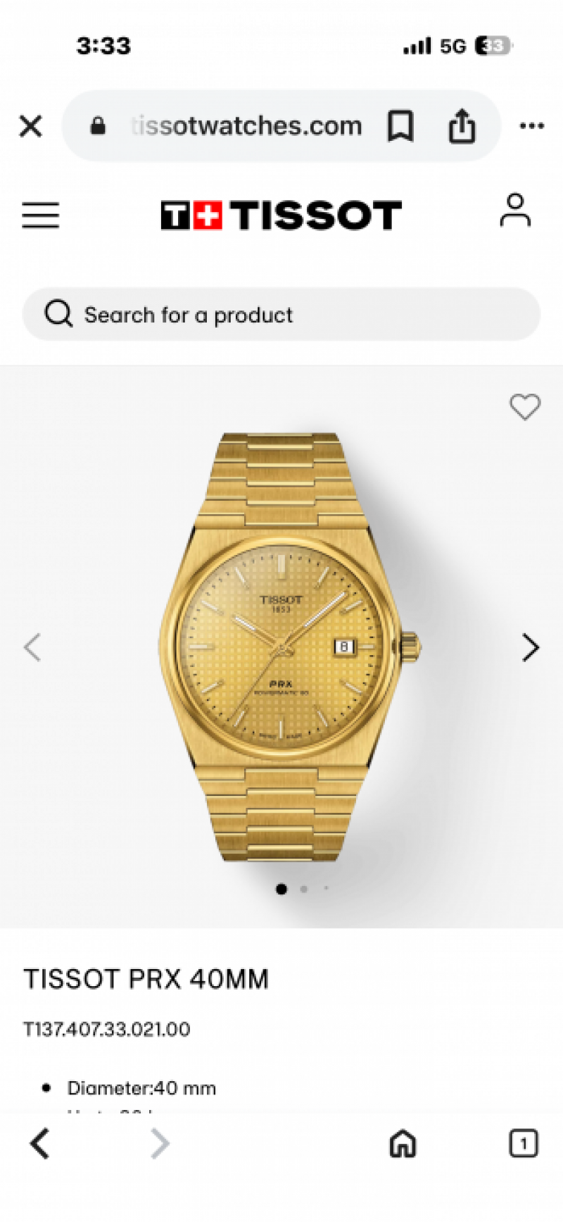 Tisso t PRX Powermatic 1853 (AAA 1st Quality) Stainless steel